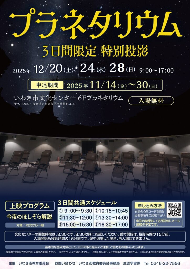 ✨12/20・24・28✨プラネタリウム特別投影を開催します