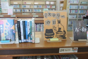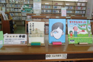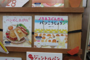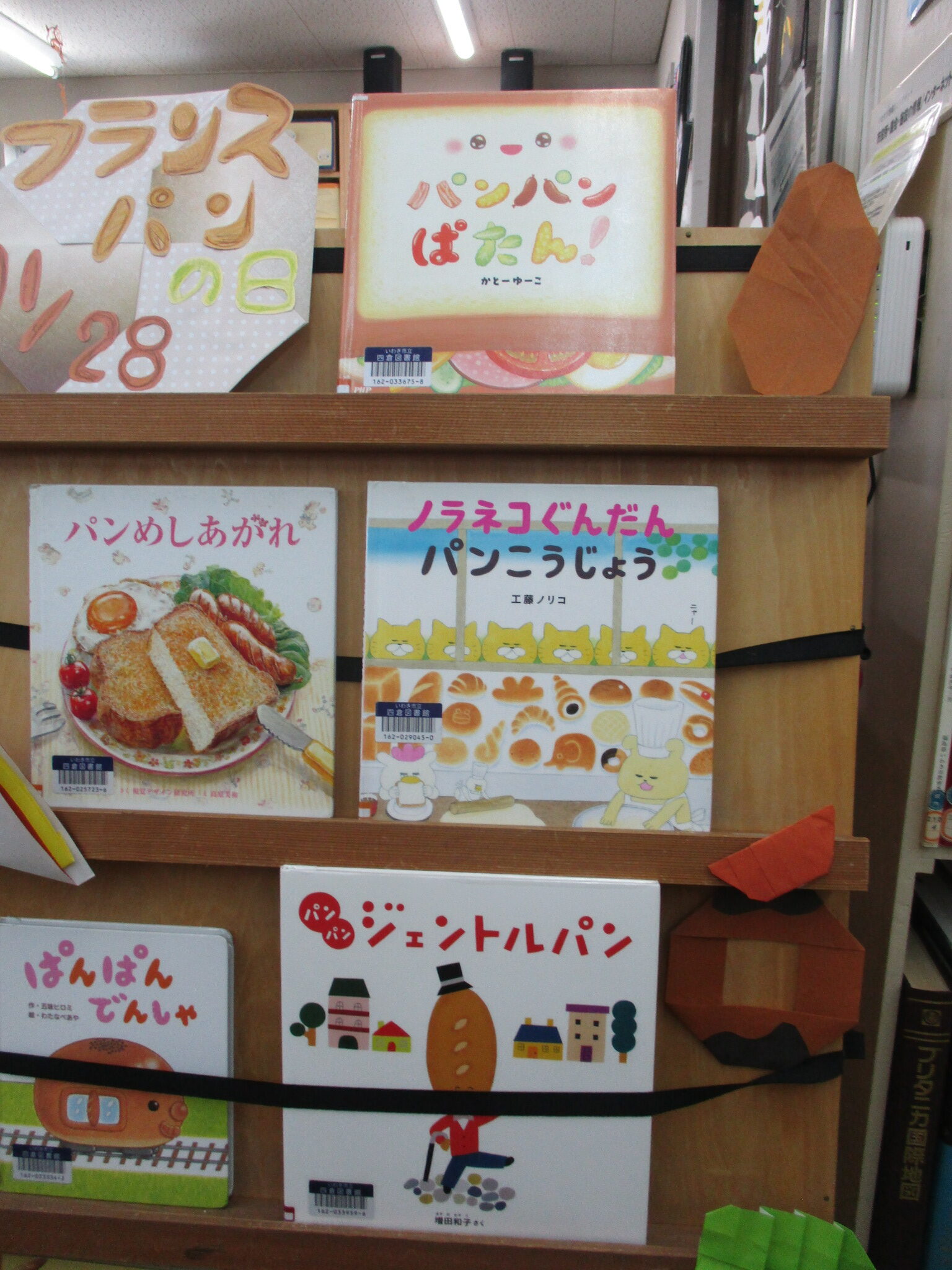 ミニ展示 11月28日フランスパンの日にちなんでパンの絵本を展示しました。その他にも展示をしています。皆様のご来館をお待ちしております。