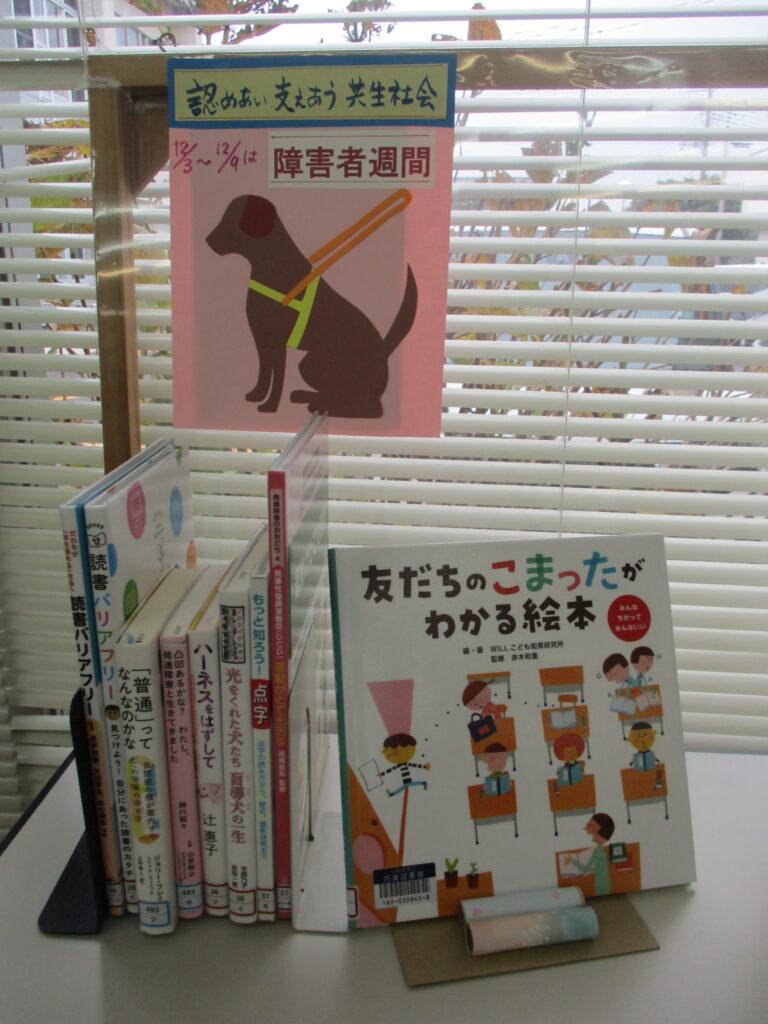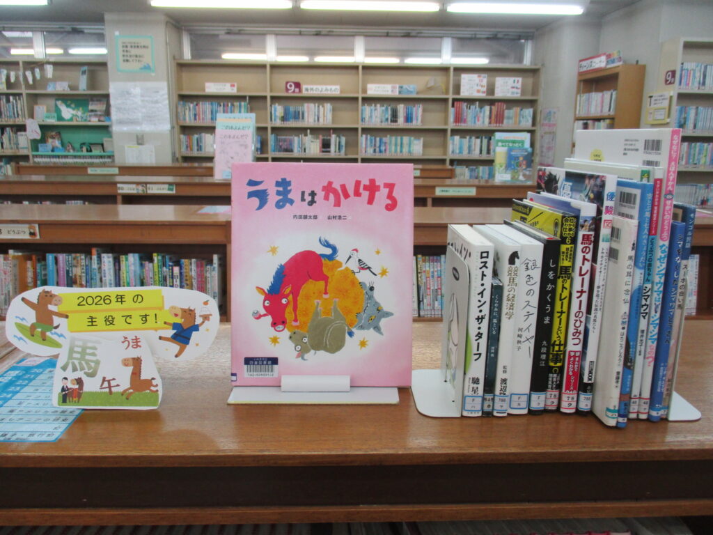 ミニ展示障がい者週間にちなみ関連本を展示しました。また、「来年の主役です!うま馬午来年の干支にちなみ、馬に関する本を展示しました。是非、ご来館下さいますよう、ご案内いたします。