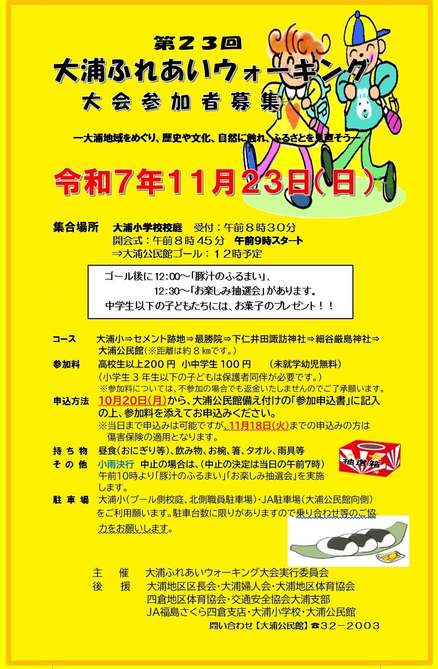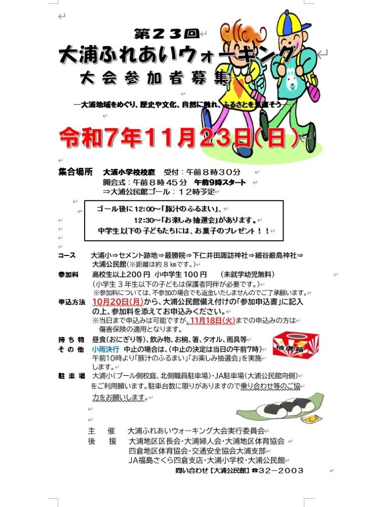 【大浦公民館】大浦ふれあいウォーキング大会のお知らせ