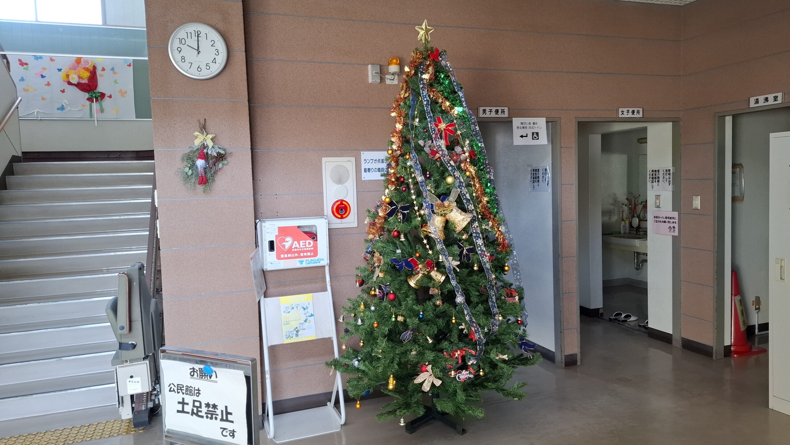 寒さが厳しくなってきました。気が付けば、メリークリスマスの季節です。公民館を訪れる市民の皆様へ、ちょっとでも感じてもらえればと、家庭にあったツリーを飾ってみました。