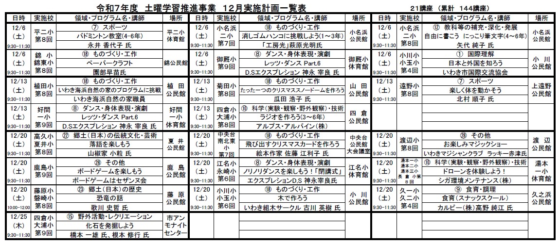 🎄12月🎄 土曜学習のスケジュール