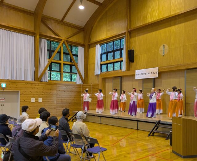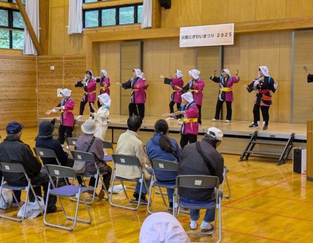 学校閉校や公共施設移転など、環境が変化している川前町で、人々が集い、楽しめる場を作ることを目的に今年初めて開催されたイベントです。会場では地区内の名産品が勢ぞろいし、飲食コーナーや、地区住民の交流施設である「小さな拠点おおか」による健康相談やクラフト教室などが行われ、講堂のステージでは公民館サークル「をどりの会」によるフラダンスや川前音頭の披露、ギターの弾き語りなどが行われました。