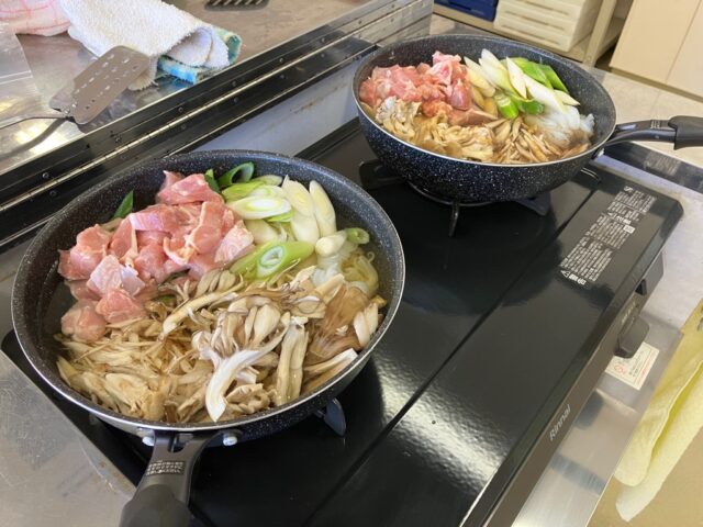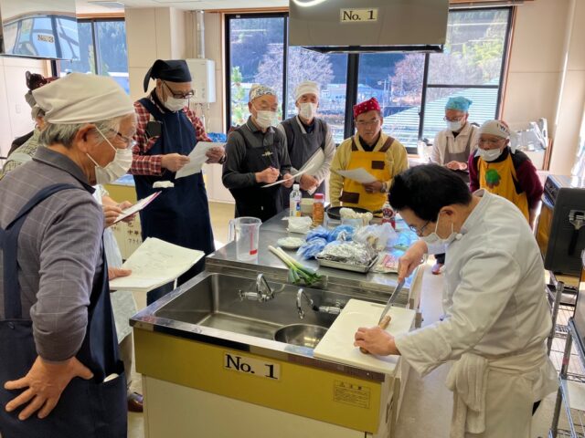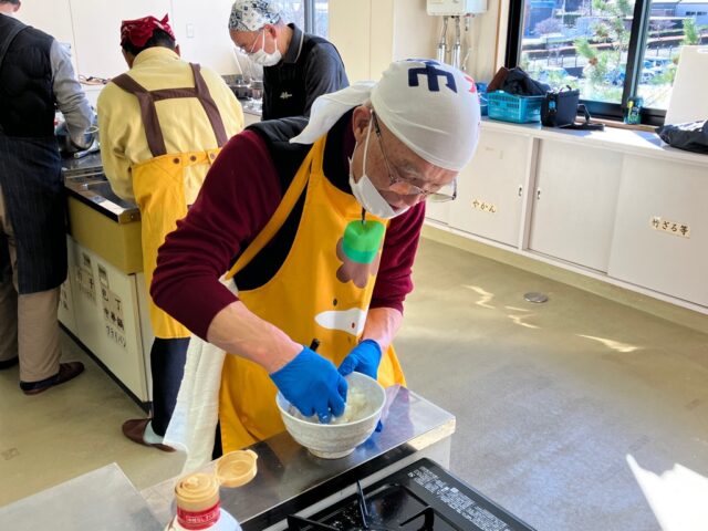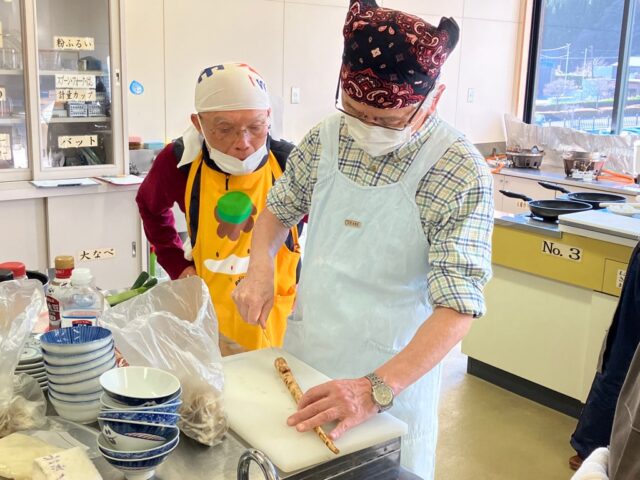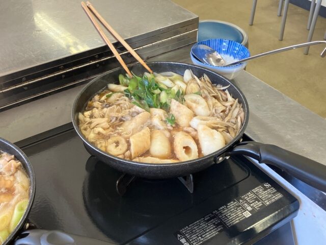 一品目の「かんたんきりたんぽ鍋」は、具材の旨味が染み込んだスープが美味しく、また、スープをたっぷり吸いこんだきりたんぽの食感もよく最高でした。「大根もち」は、もちもちとした食感がたまらなく何個でも食べられそうなくらい美味しかったです。7回にわたり経験を積んだ受講者の皆さん、お家の方にも作ってあげてくださいね。
