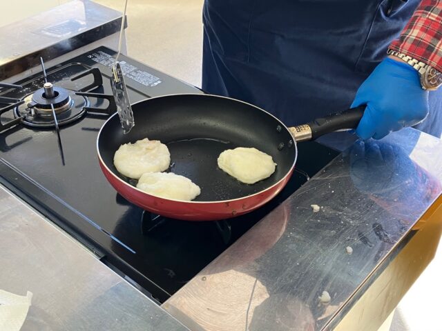 形を整えたら中火で焼いていきます(両面に焼き色をつけます)