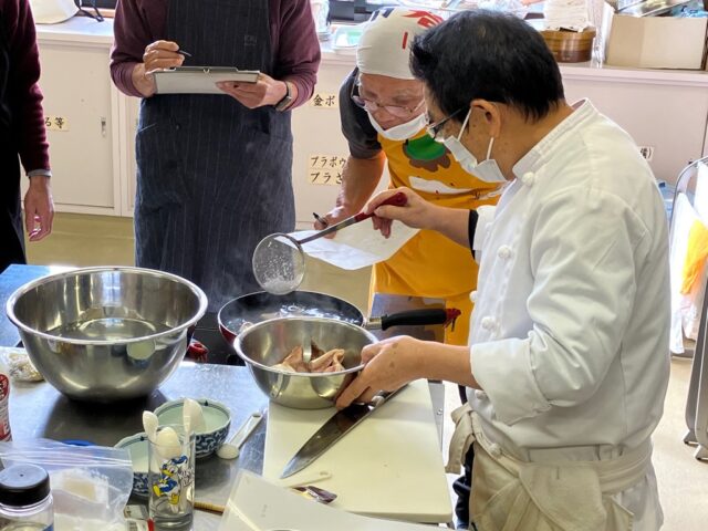 皆さんも実際にやってみます(これで臭みがなくなるんだね)