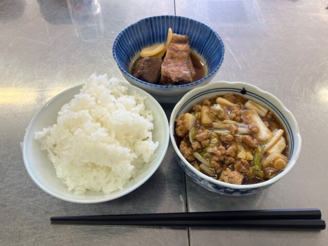 一品目の「マーボ白菜」は、白菜の甘みと麻婆のピリ辛味が絶妙に合わさりとても美味しかったです。「ブリのアラとカマの煮つけ」は、身がふっくらとしていて生姜の風味も良く味もしっかりと染み込んでご飯との相性抜群でした。次回、第7回(最終回)のレポートもお楽しみに!