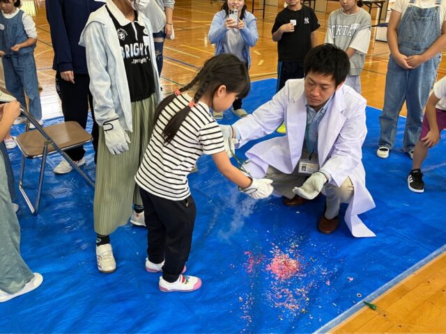 予想外の実験結果に歓声が上がります(保護者も興味津々です)