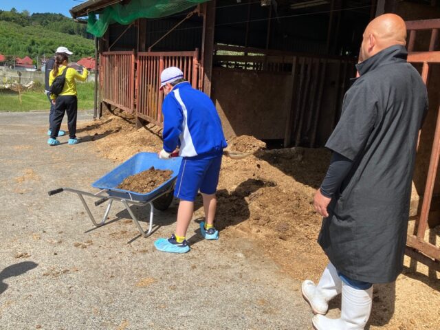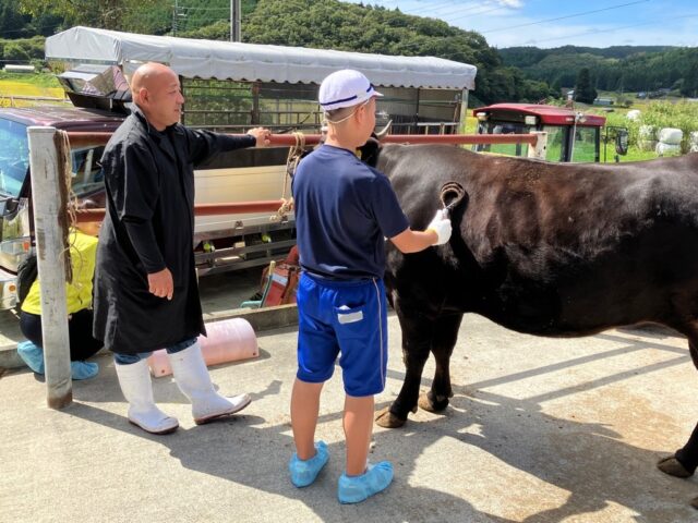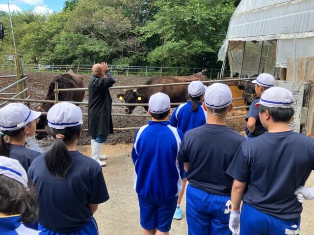 活動報告令和7年9月22日(月)三和小学校の「三和ふるさと教育」と三和公民館の「学校・家庭・地域パートナーシップ推進事業」との連携事業として6年生による「食育授業」が行われました。三和町差塩で黒毛和牛の繁殖を手がけている草野畜産におじゃまし、牛のお世話をしてきました。