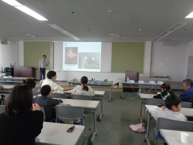 令和7年11月15日(土)に、「後期市民講座親子でオリジナルLEDスタンドを作ろう」を開催しました。 福島工業高等専門学校の植英規先生を講師に迎えて、型に入れたLEDをレジンで固めて好きな形を作り親子で協力してLEDスタンドを作成しました。電気のチカラも学ぶことが出来て、とても有意義な時間となりました。