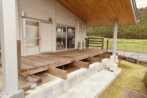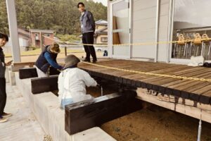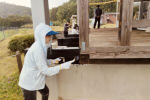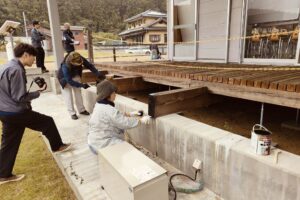 【久之浜・大久公民館】大久公民館のウッドデッキへ防腐剤塗布をしました
