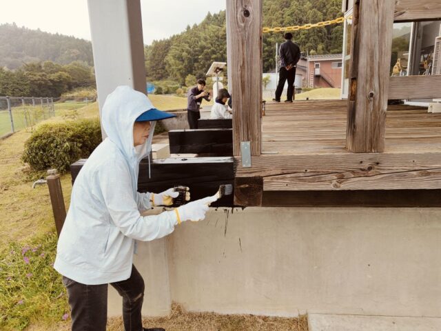【久之浜・大久公民館】大久公民館のウッドデッキへ防腐剤塗布をしました