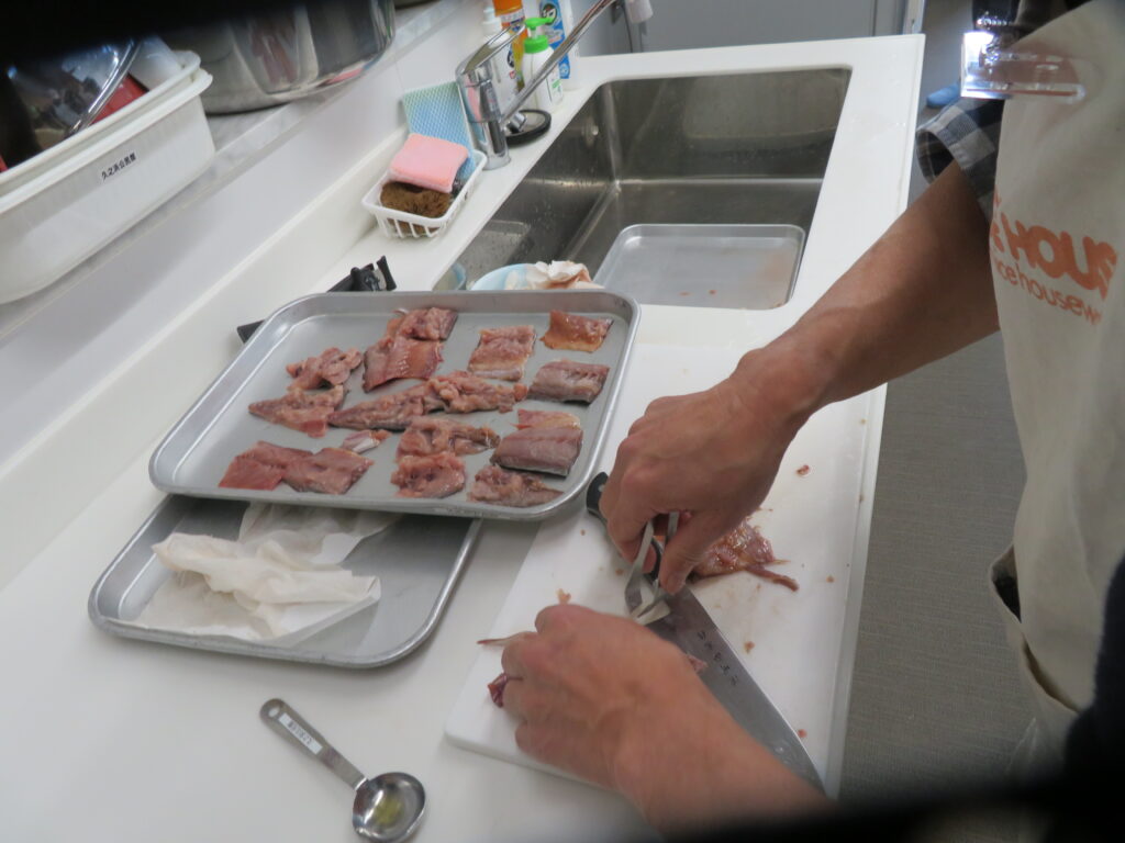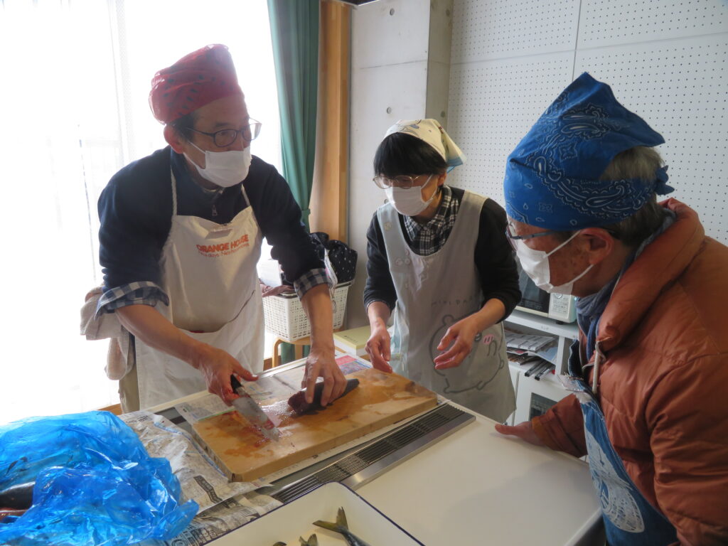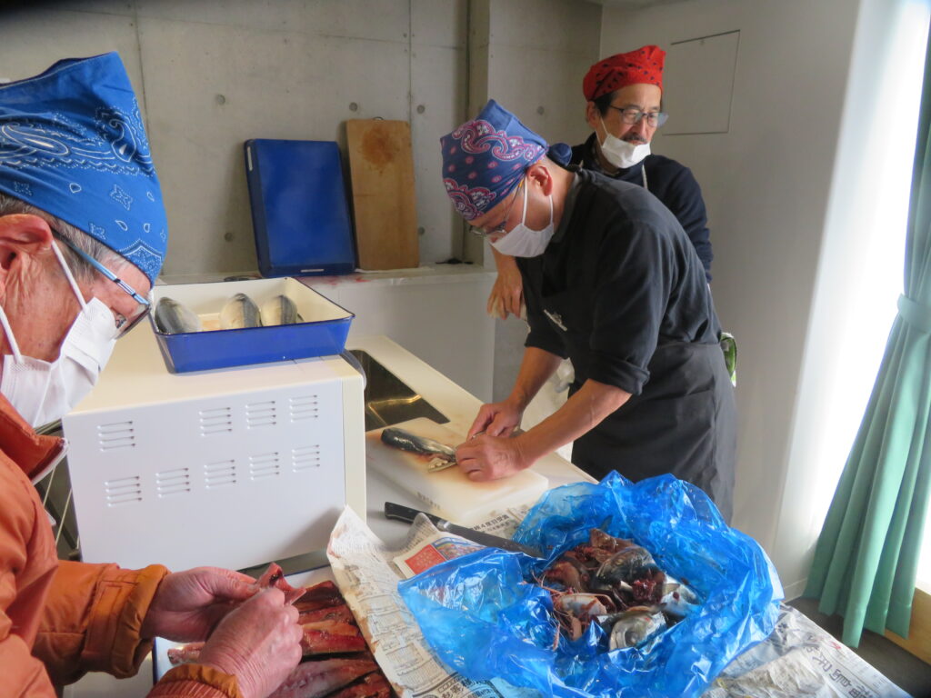 今回は、水産振興課と連携した魚食普及事業を兼ねており、いわき・ら・らミュウにある「まるふと直売店」さんから、サバ(10尾)の提供を受けました。
