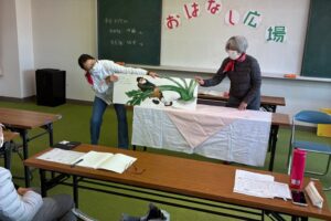 先日は【おはなし会】をさせていただく幼稚園のホールにて、園長先生と打ち合わせをさせていただきました。