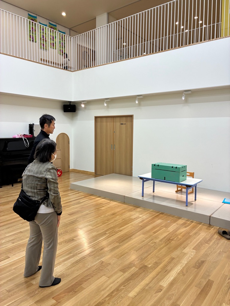 園長と先生と机とカバン眺める
