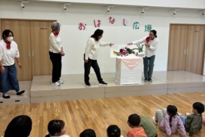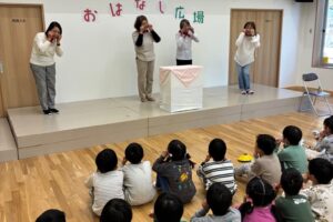 活動報告11月19日、市内幼稚園のご協力のもと、市民講座「読み聞かせボランティアをやってみよう」受講生(11名)によります、【おはなし会】を実施しました!