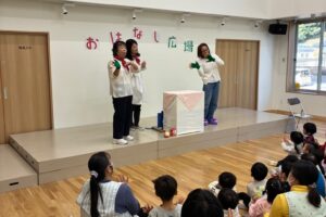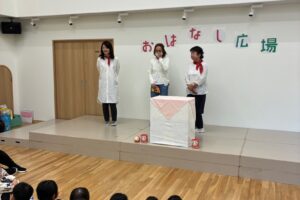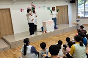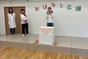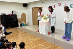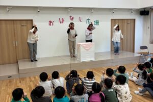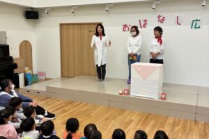 〇【年少組】の園児の皆様を前に、読み聞かせをいたします。
