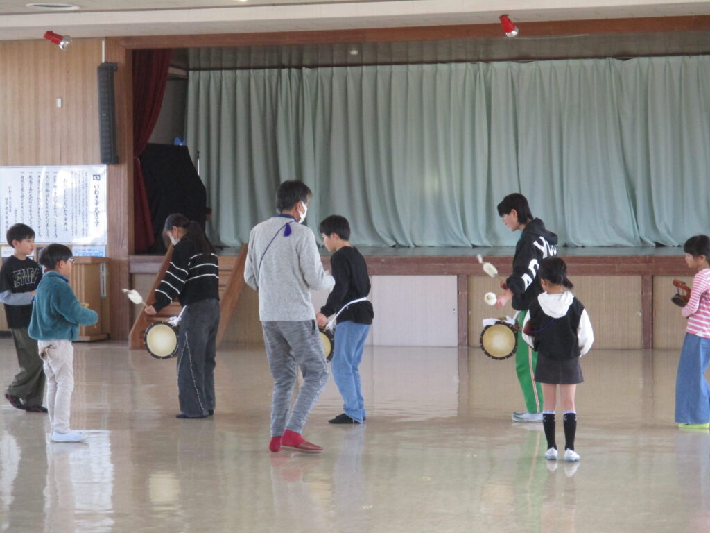 参加された、児童は、上仁井田子どもじゃんがらの皆さんの指導をうけ、熱心に取り組んでいました。