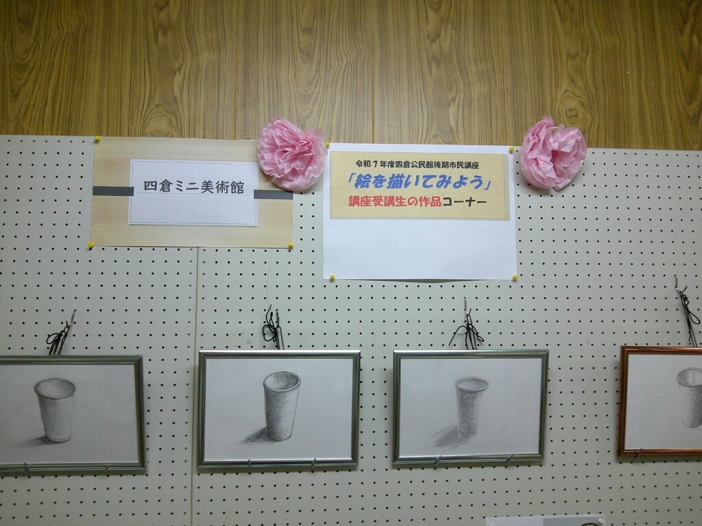 令和7年12月12日、「四倉公民館 後期市民講座 絵を描いてみよう」で受講生が、 紙コップデッサンに取り組みました。 今回、デッサンが完成しました。 森口 美樹先生の指導のもと、講座生が一生懸命描いた新作です。 是非、作品をご覧に四倉公民館におこしくださいますよう、ご案内いたします。