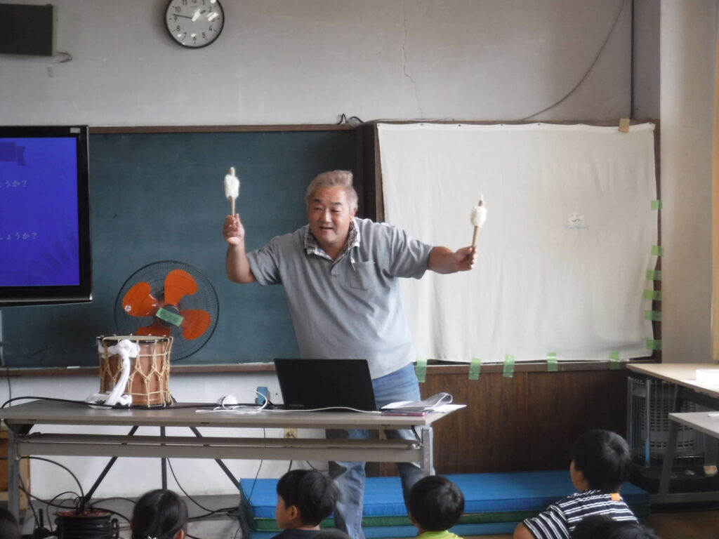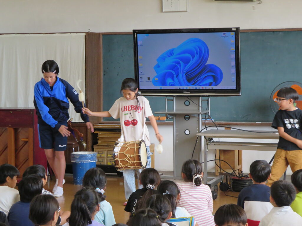 令和7年9月24日、四倉小学校では、総合的な学習の時間で、四倉町の伝統的な行事である、じゃんがらの歴史と実演によるじゃんがら踊りを学びました。 講師は、小湊 剛 先生をお招きしました。 子どもたちは、じゃがらの歴史を学んだ後、上井田こどもじゃんがらに所属する四倉小児童3名が模範演技を披露しました。地域でのじゃんがらの大切さを学んだ貴重な機会となりました。