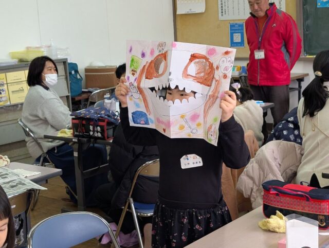 令和8年2月8日、後期市民講座 「キッズアートで楽しもう!」を実施しました。 新妻 敏子 先生に講師をお願いしました。 第1回目は、絵をかいてお面を作ろうと題してお面づくりに取り組みました。