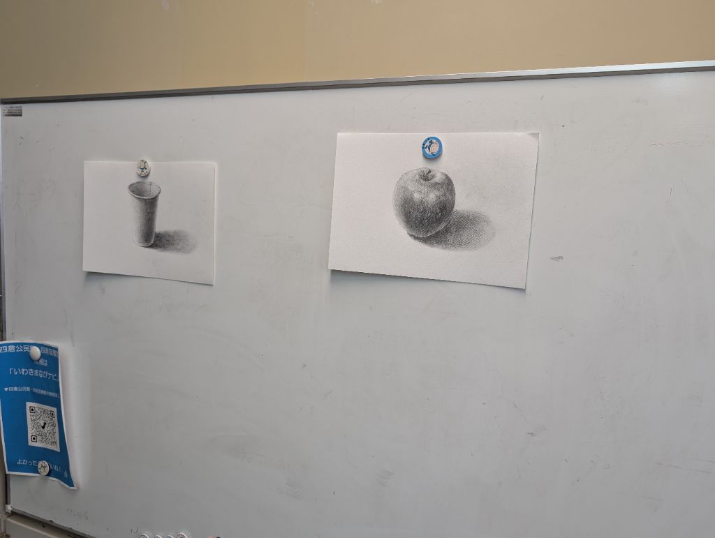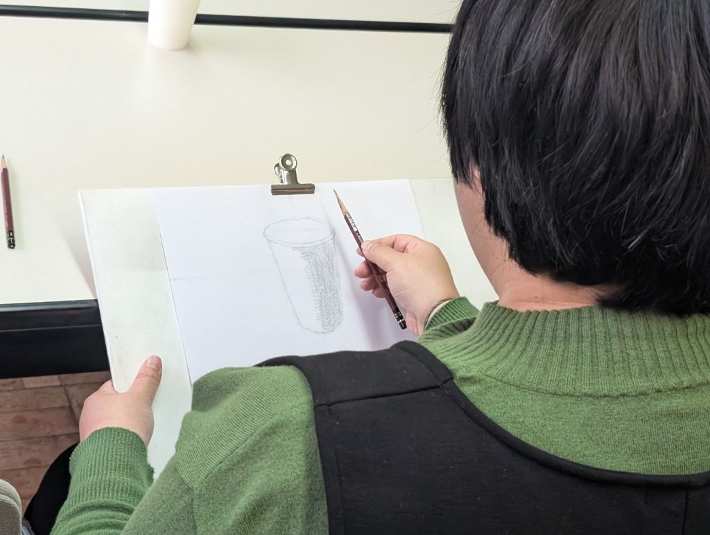 令和7年12月3日、後期市民講座 「絵を描いてみよう」 を実施しました。 森口 美樹 先生に講師をお願いしました。 第2回目は、1回目に引き続き、紙コップデッサンを行いました。 今回は、特に、「陰影について学ぶ」をテ-マに、紙コップデッサンの書き込み完成まで取り組みました。