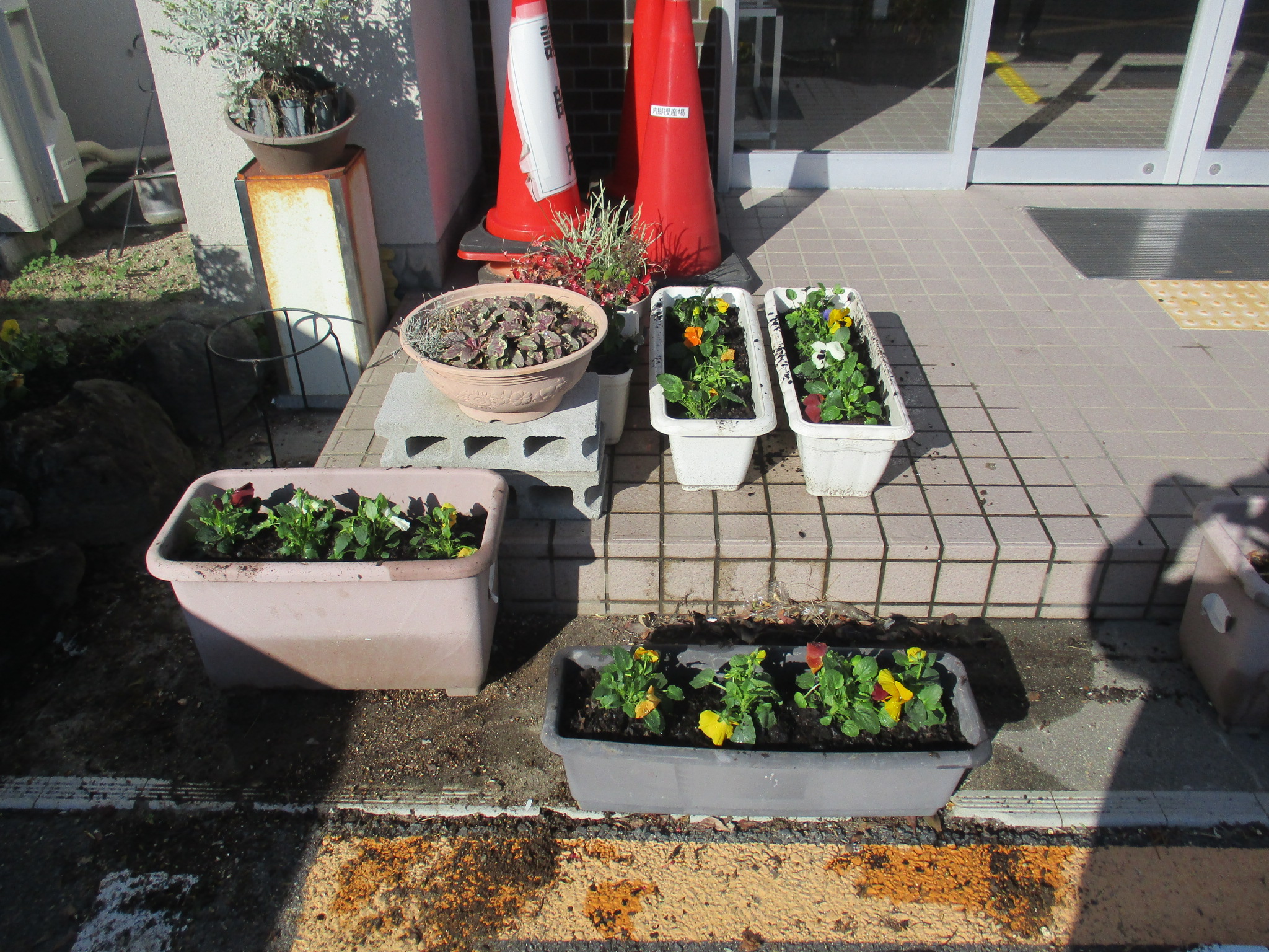 令和7年11月12日、緑化事業で提供されたチューリップ、パンジーを植栽しました。