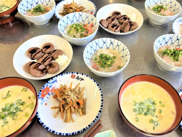 はじめにお手本として鈴木先生が5品を作りスタートです。