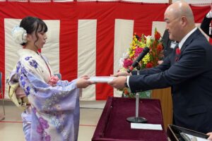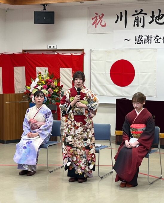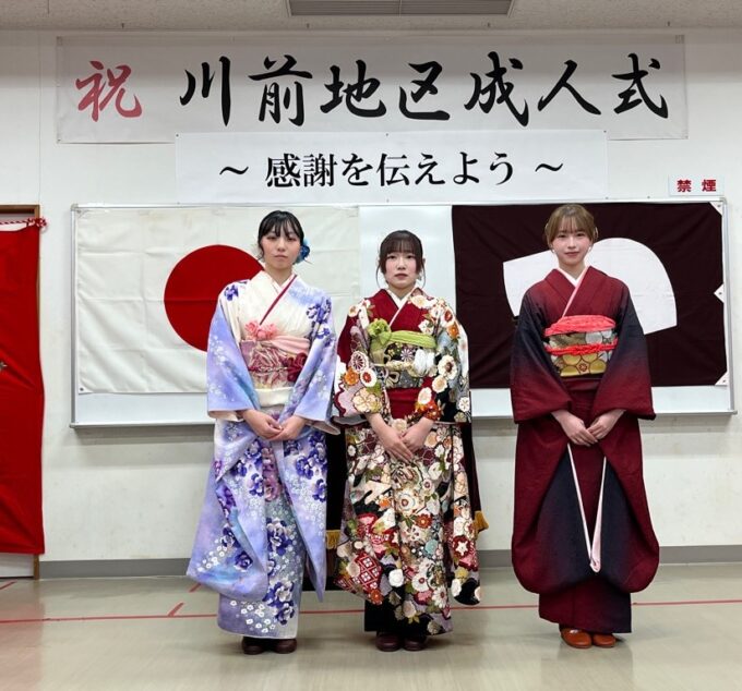 当日は川前地区在住の3名の新成人が参加し、式典および記念行事が行われました。