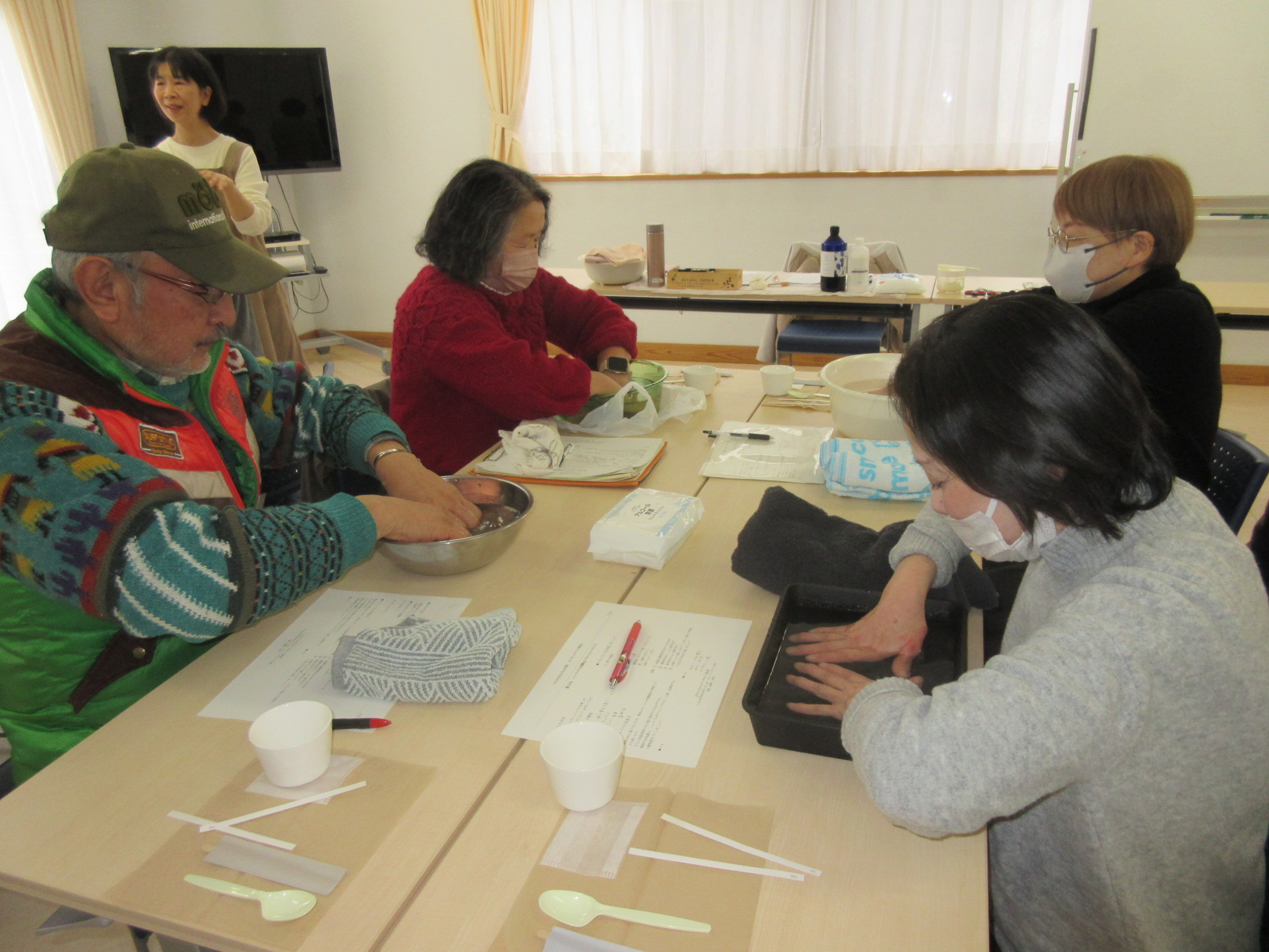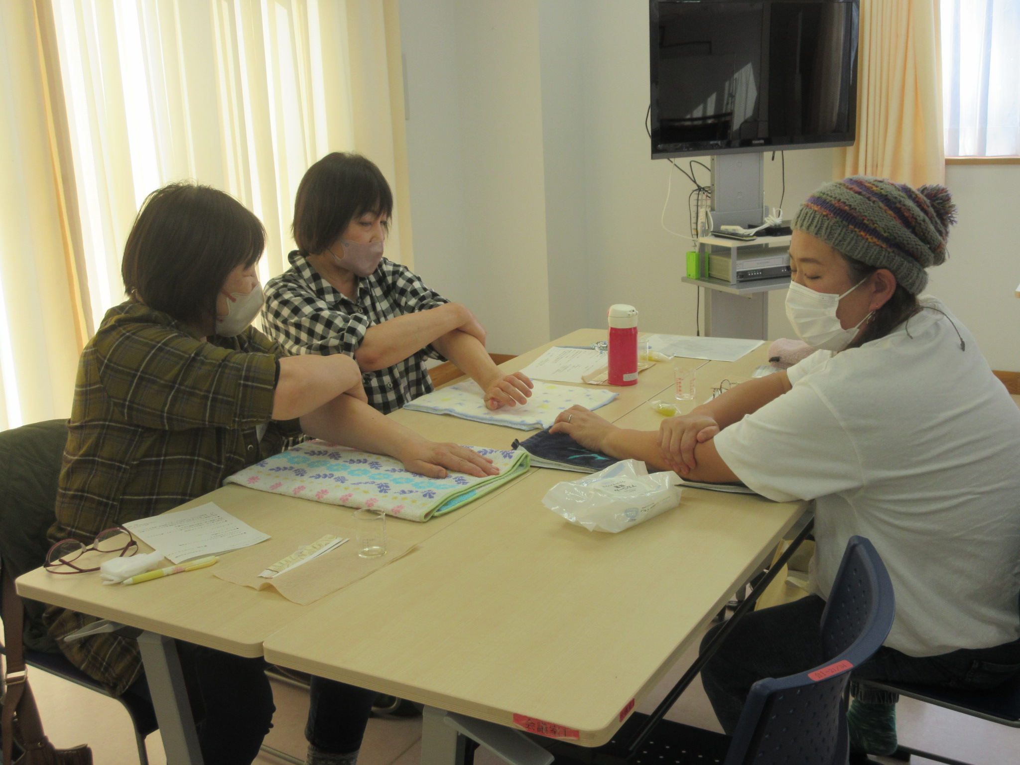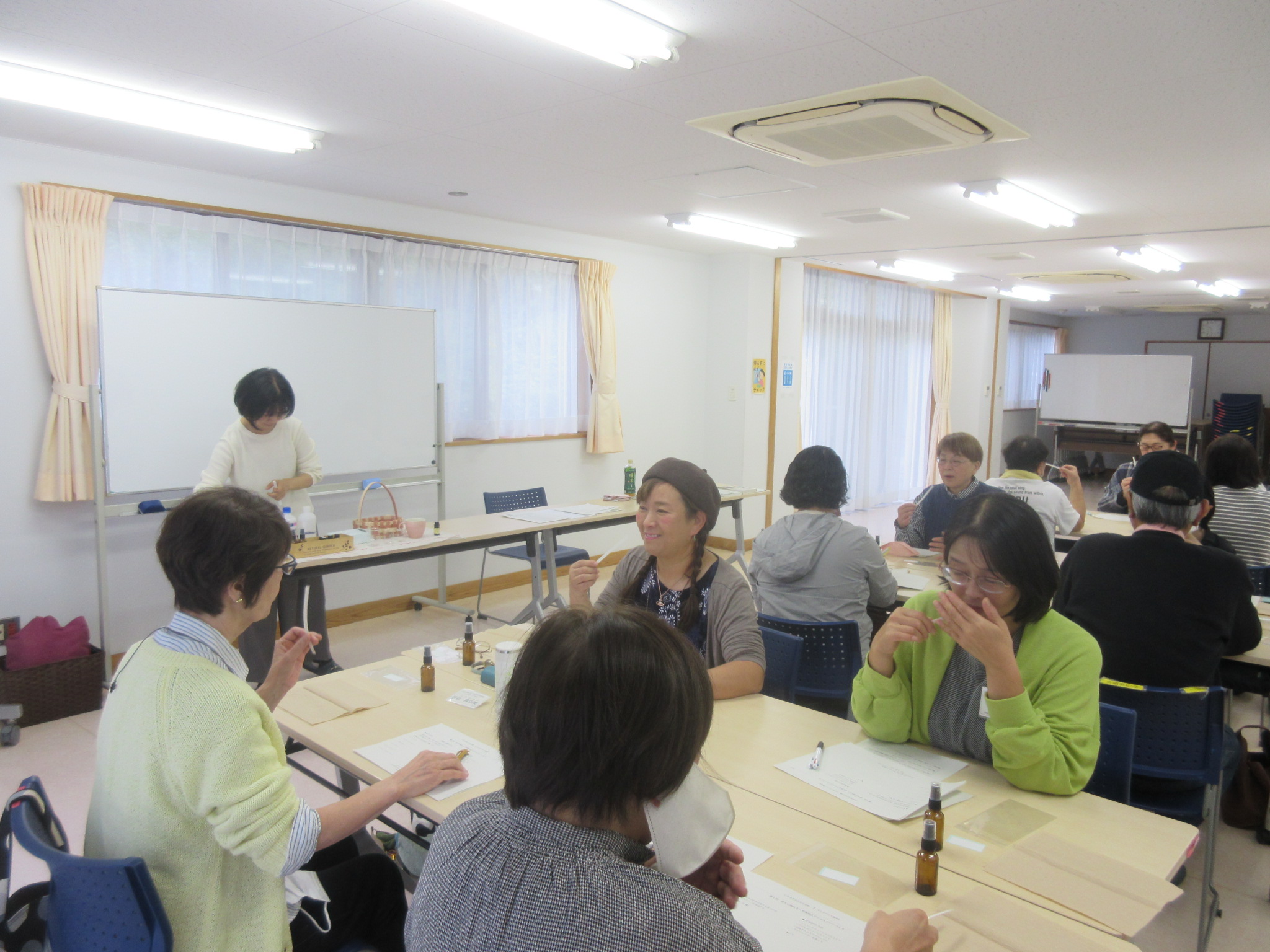 1回目は芳香浴とアロマスプレーづくり、2回目はハンドバス体験とバスソルトづくり、3回目にはハンドトリートメントとアロマオイルづくりを行いました。受講生の皆さんはアロマの香りで心も体も癒され、製作したアロマグッズで自宅でもアロマを楽しむことができました。