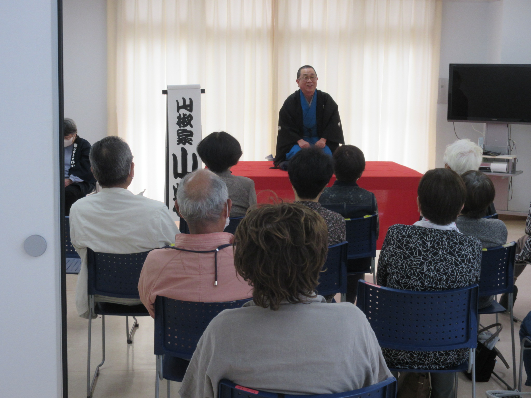 落語を楽しみ、南京玉すだれにも挑戦しました。