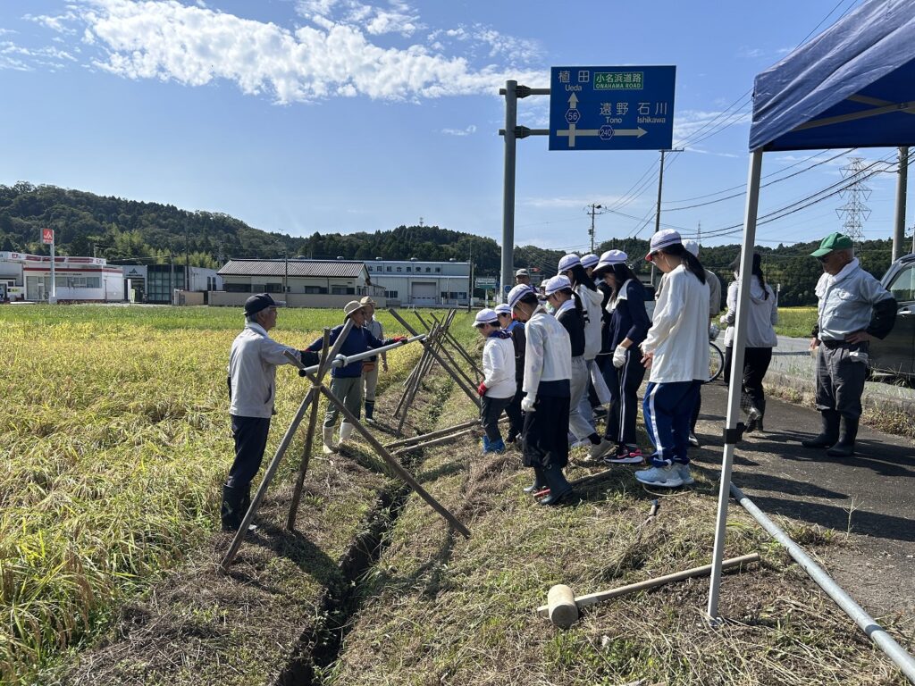地元地区の「田んぼの学校応援団」のメンバーが準備作業をしています。