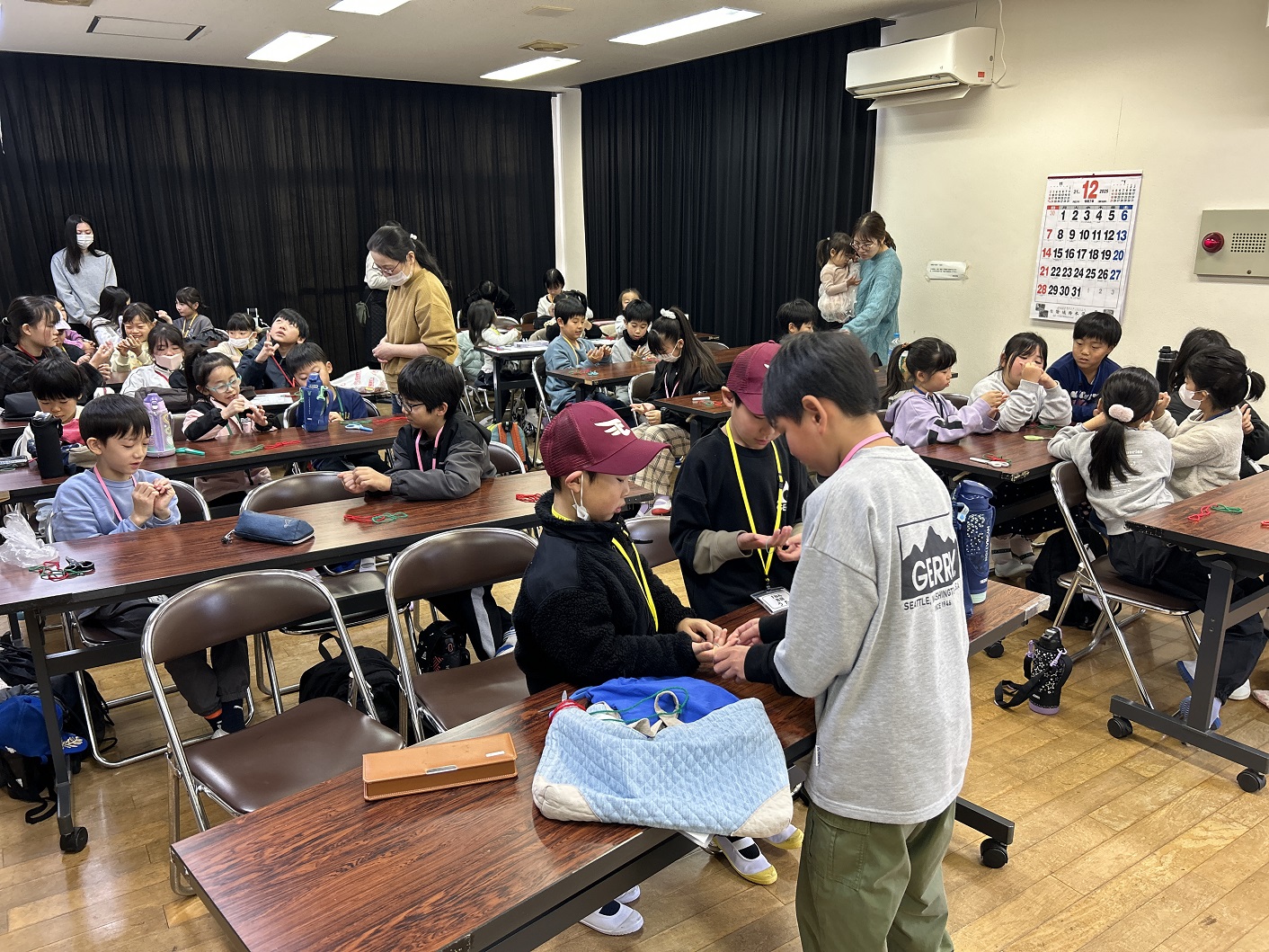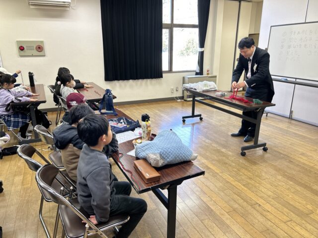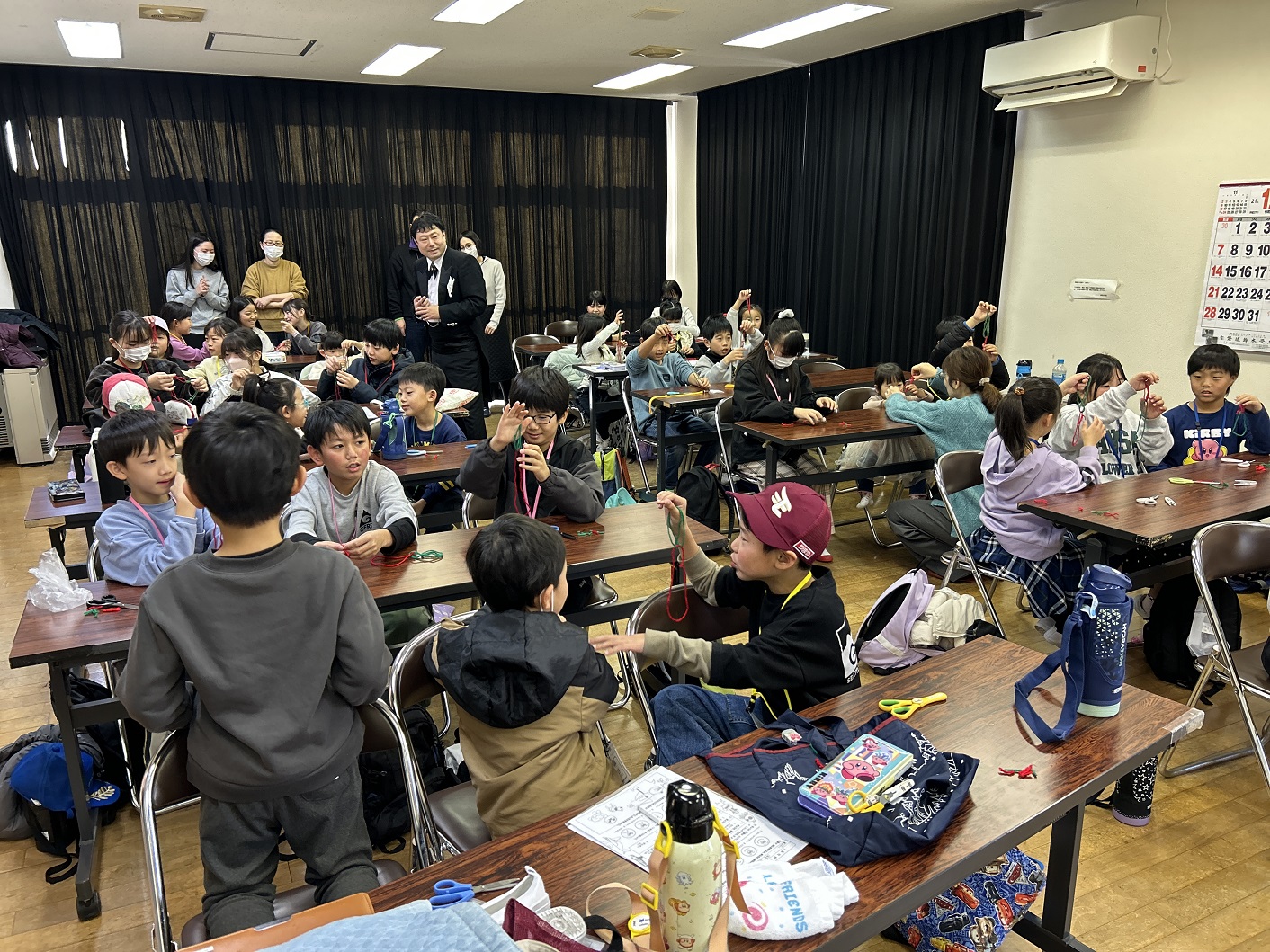 ラッキー赤津先生のマジック披露が終わり、早速レクチャーに入ります。最初に毛糸を使ったマジックです。