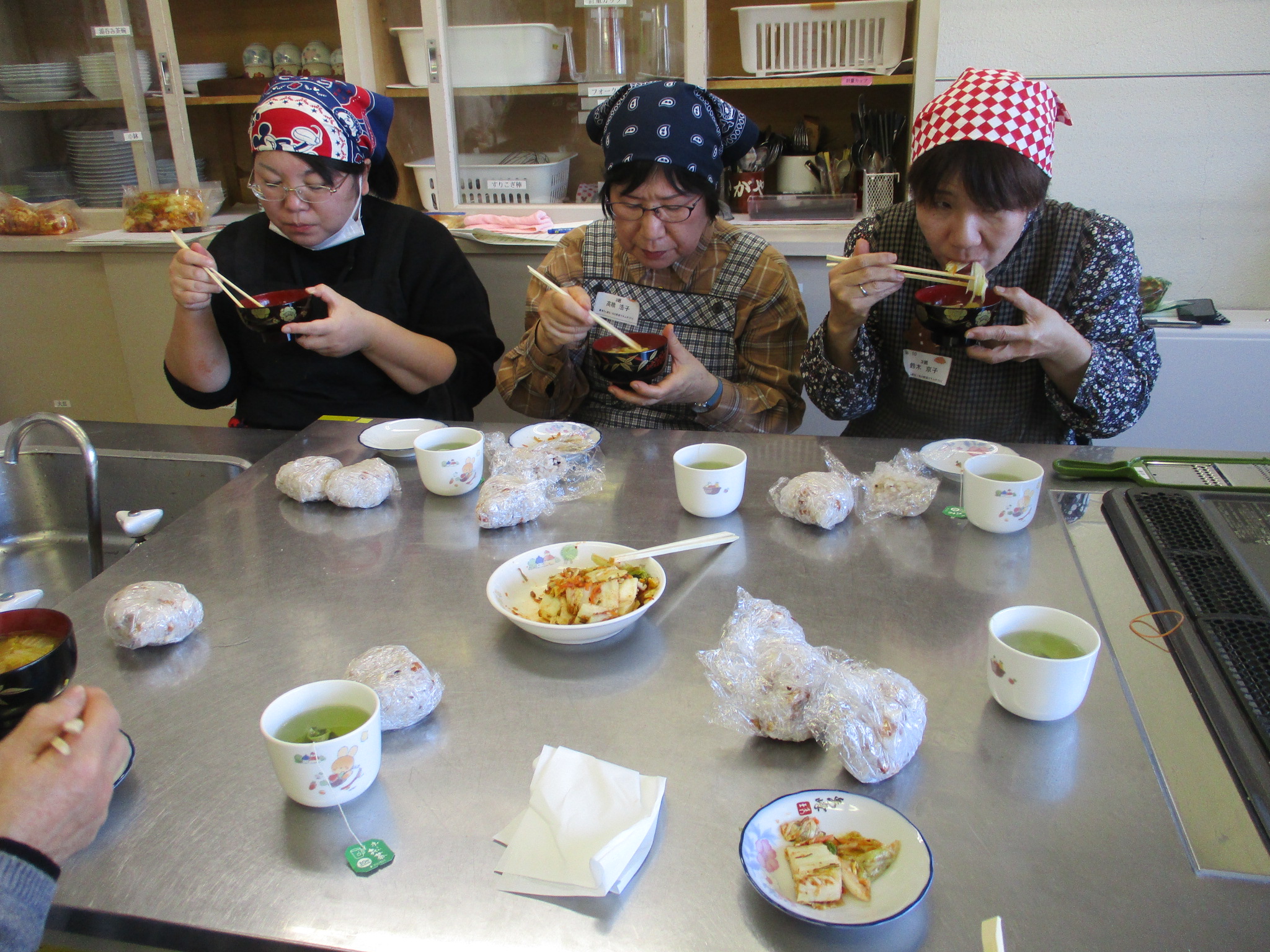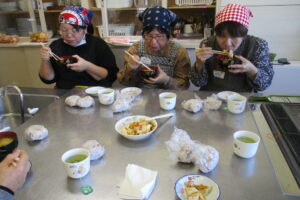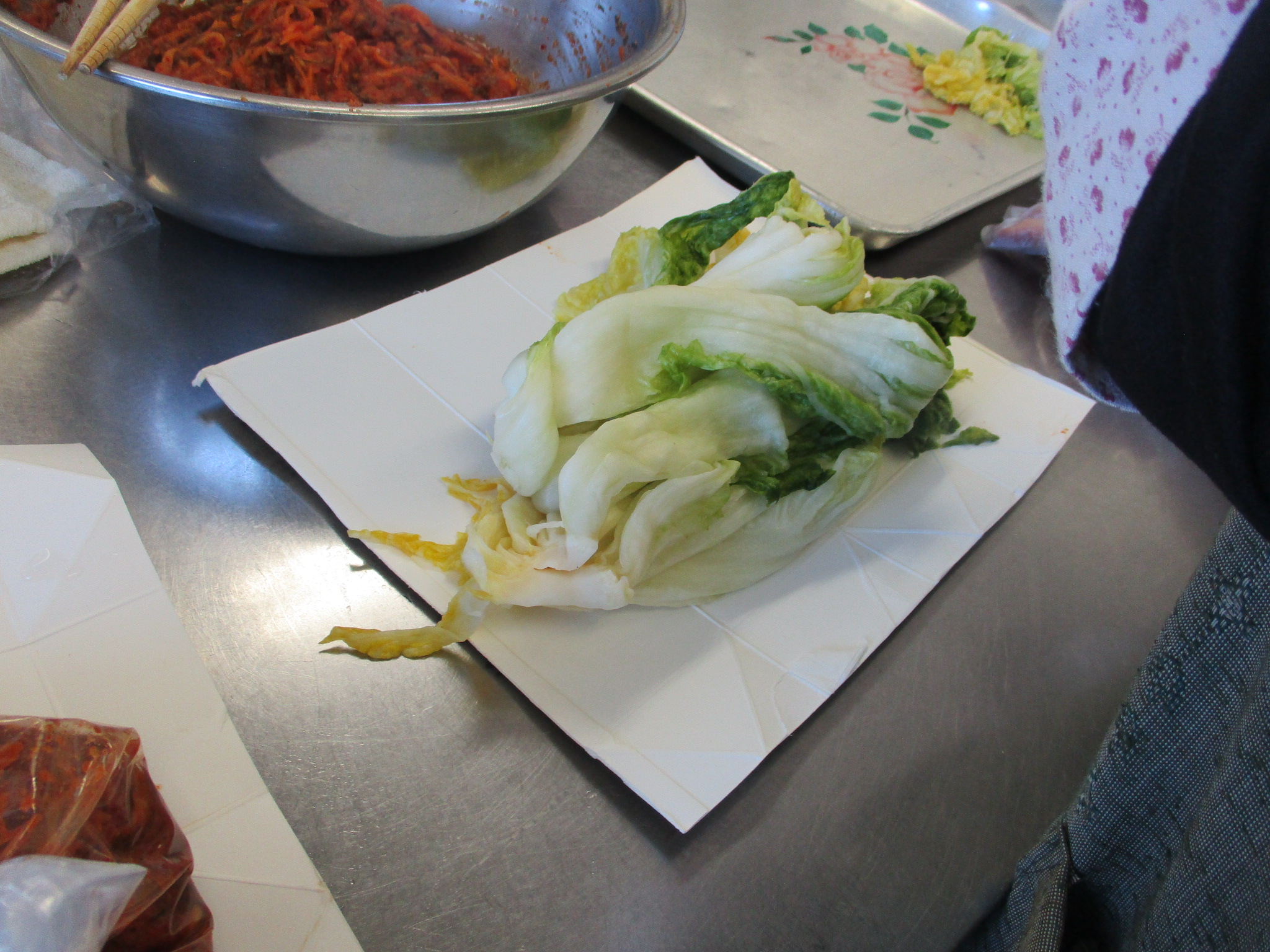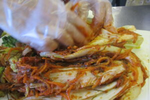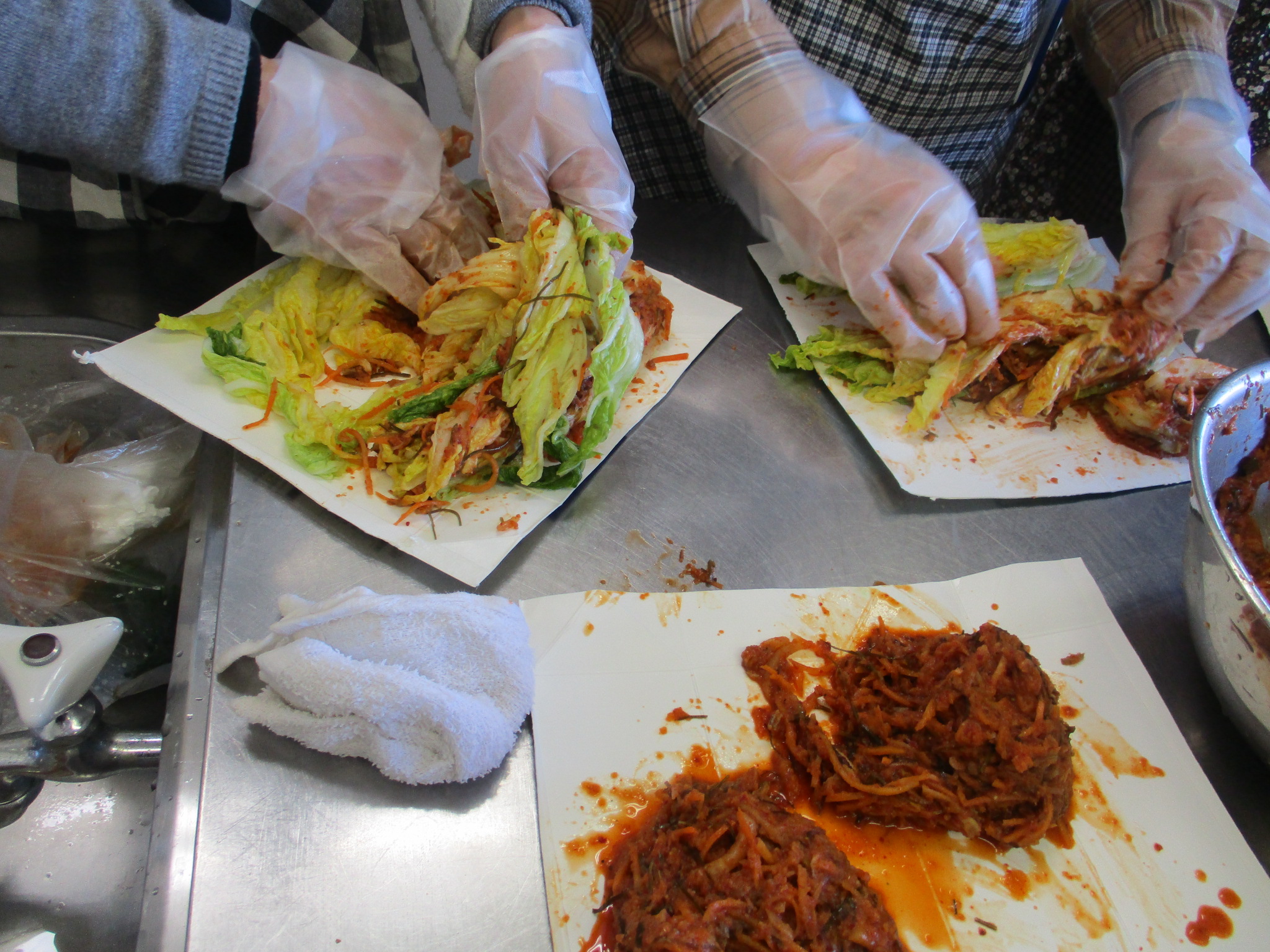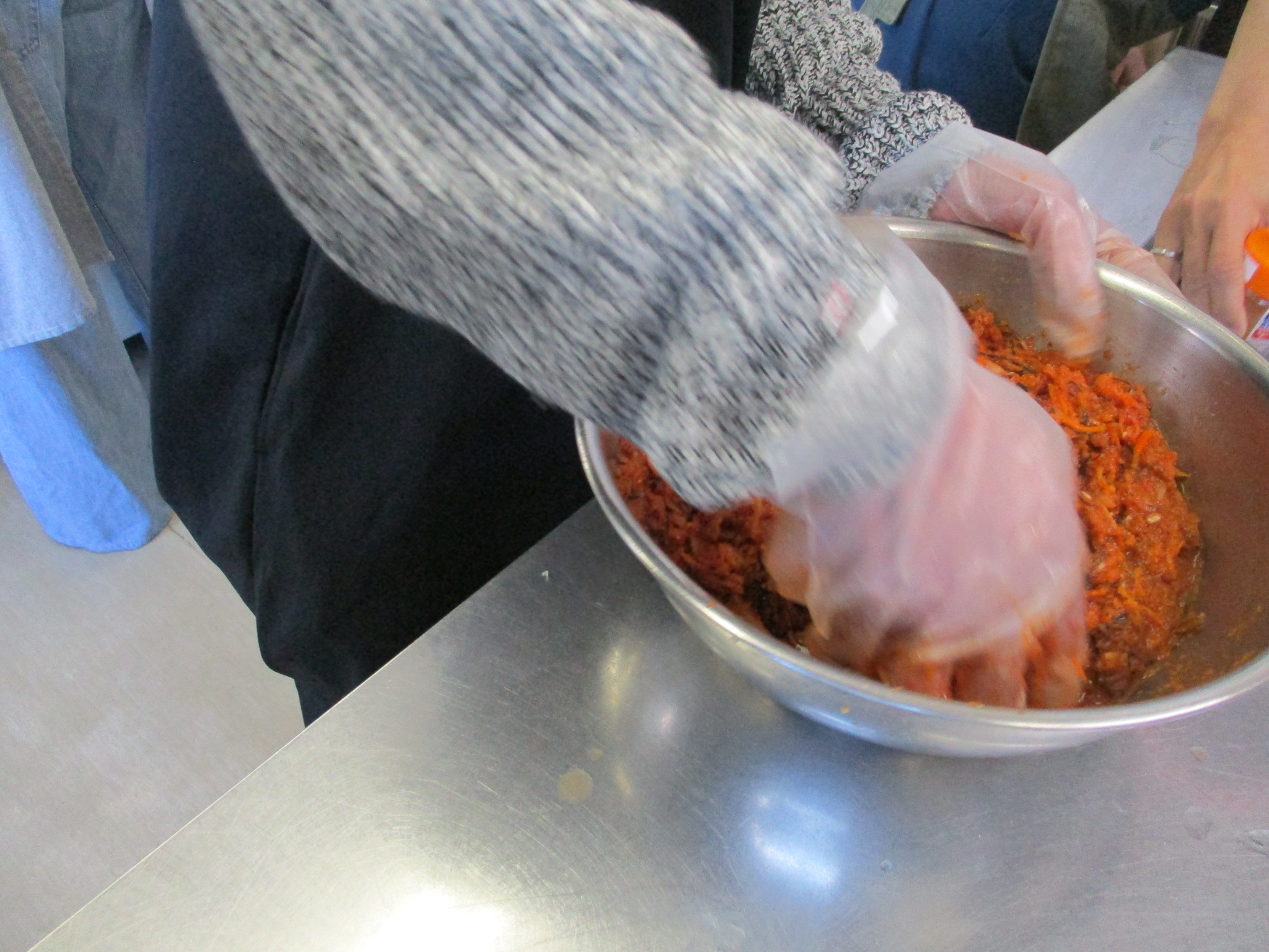 これでキムチの完成です。皆さんプロの仕上がりに大満足でした。なじみのない調味料もありましたが、代用品も教えていただき、また 唐辛子粗挽きと細粒粉の辛さの違いが体感できて、大変参考になり、家でも作ってみたいとの感想をいただきました。