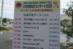 10月5日(日)、赤井公民館市民講座「レッツヒップホップ」に参加している小学生20名が【いわき街なかコンサート2025】に出演し、「ダンスホール/Mrs. GREEN APPLE」「ブラザービート/SnowMan」「Choo Choo TRAIN/EXILE」の3曲をイオンいわき店駐車場特設ステージにて披露してきました!