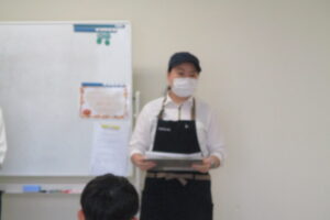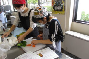 前期の市民講座「ひとしお料理教室」で講師を務めてくださった(株)マルト商事の熊谷 湖乃巴先生と福富 涼子先生が教えてくれました。
