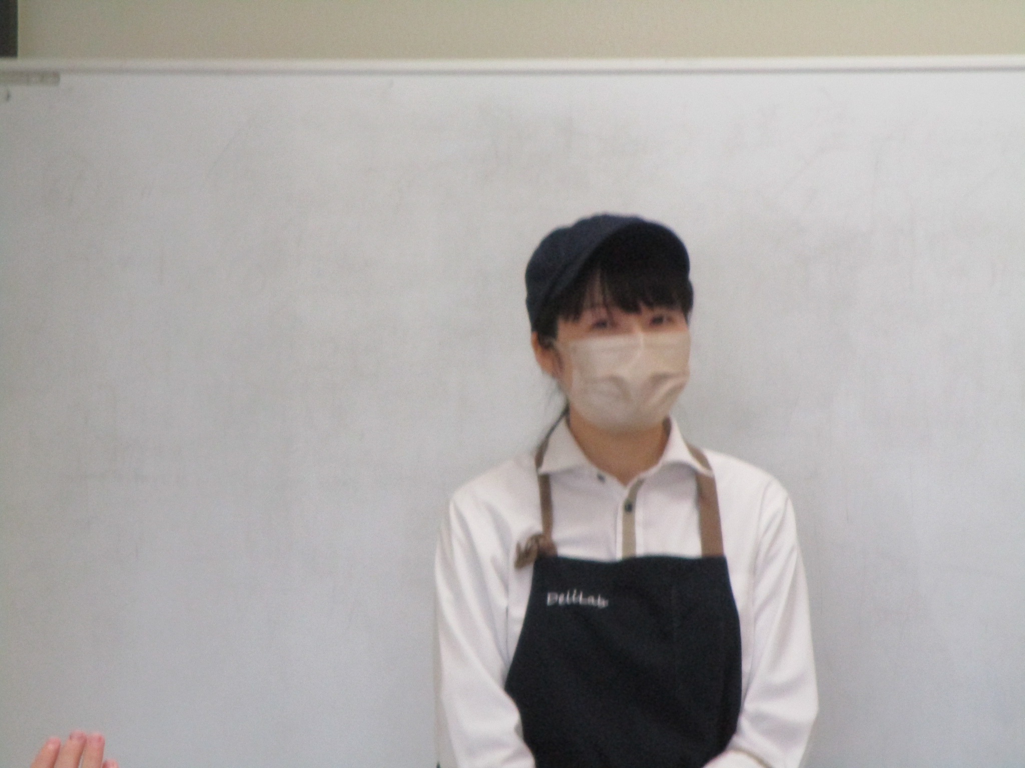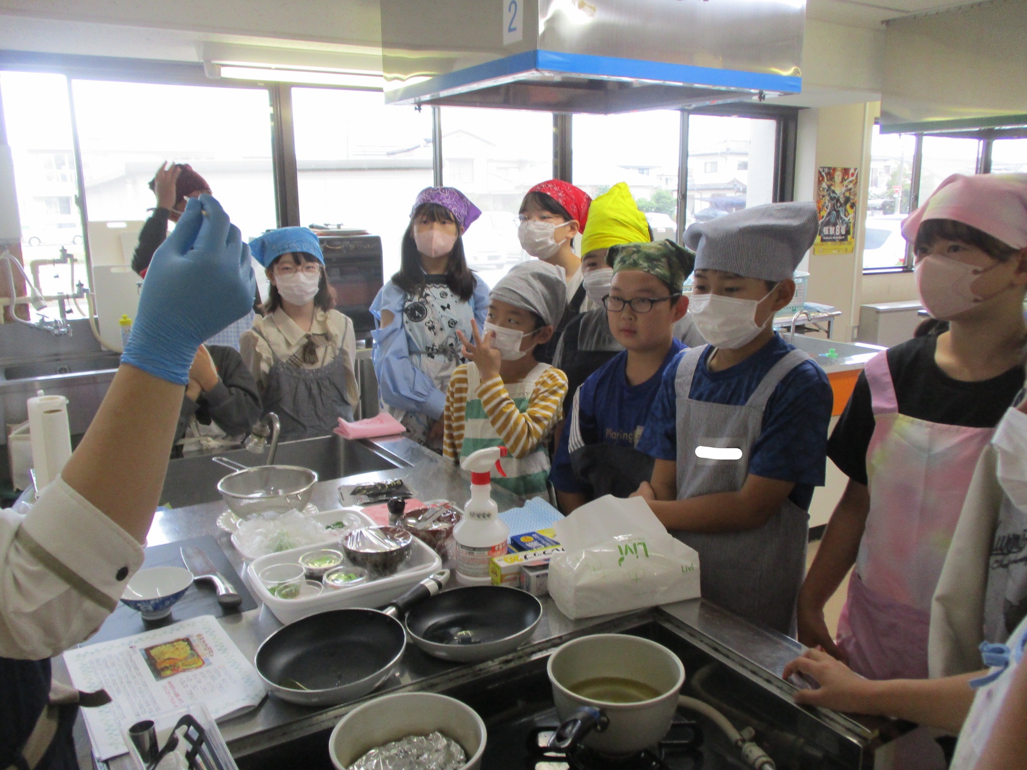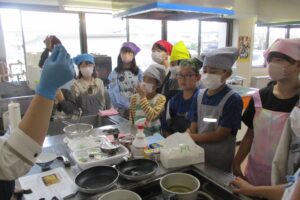 先生が料理の手順を見せながら説明をしました。みんな真剣に先生の手元を見ていました。