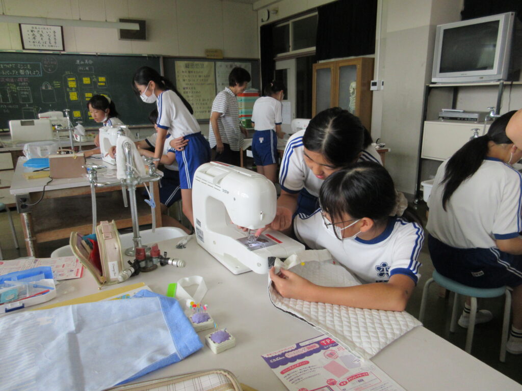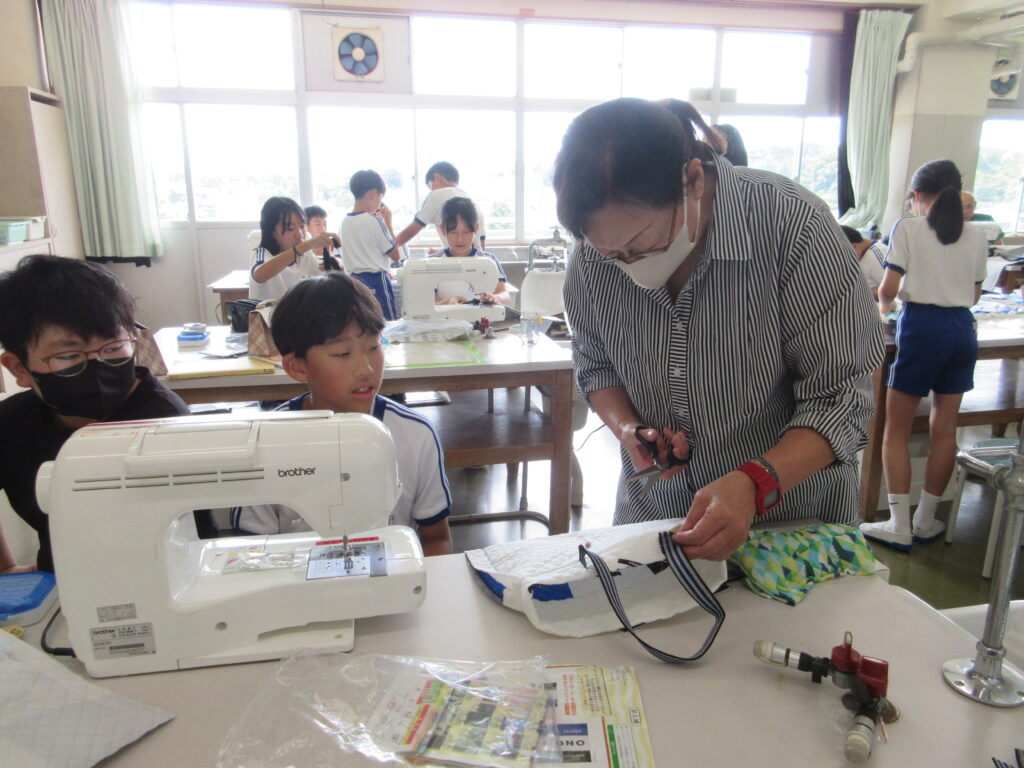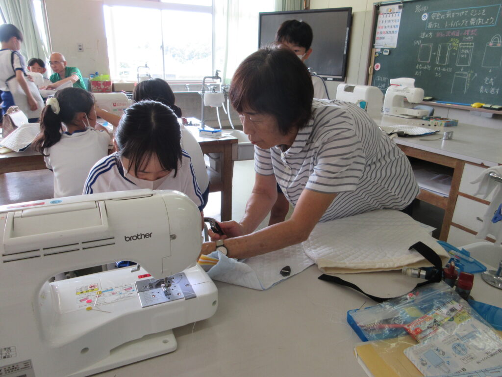さらに、9月11日・12日・17日には6年生を対象に、地元の🏵️「飯野婦人会」🏵️の協力を得て「ミシンでバッグの製作」を行いました。