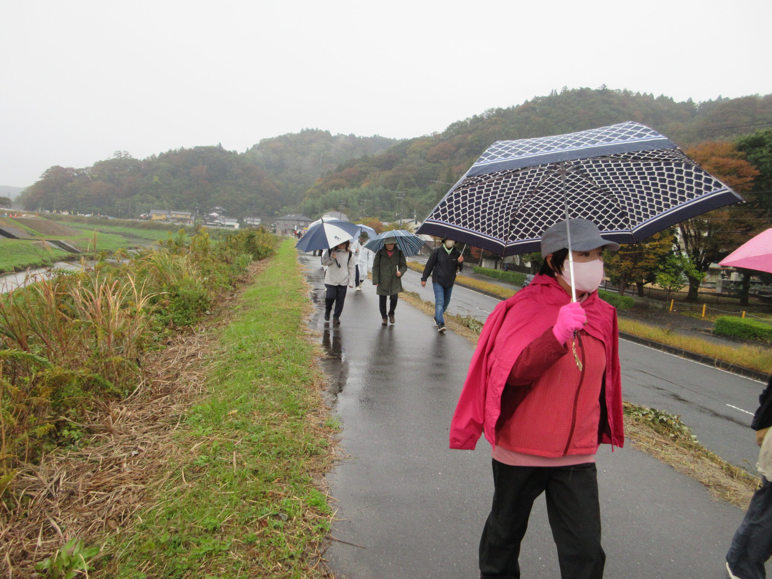 11月9日の日曜日はあいにくの雨、底冷えと悪天候にもめげず21名の参加者と6名のスタッフ、総勢27名で飯野の史跡地、約7㎞のウオーキングを楽しみました。9時に飯野公民館を出発し、養蚕神社⇒増福寺⇒龍澤観音(二十番札所)⇒白土舘⇒龍門寺と2時間をウオーキングしましたが、「飯野にはこんなところもあったのか」などの声も聞かれ主催スタッフも胸を撫で下ろしていました。