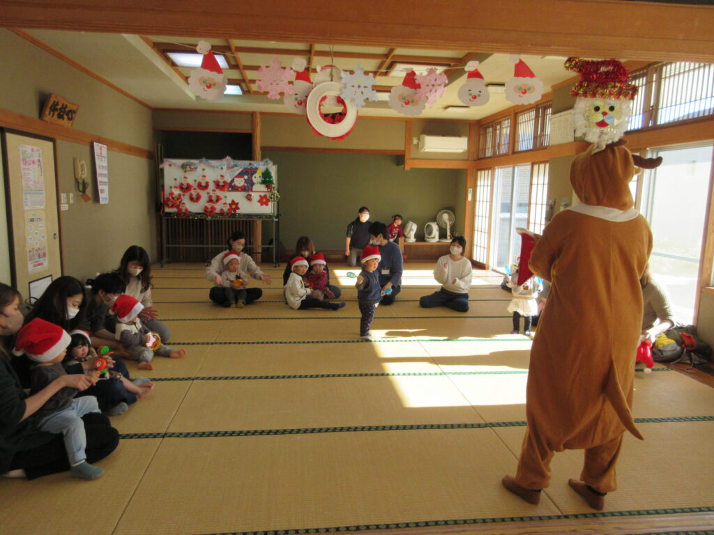 トナカイに扮した講師とサンタクロースに扮した館長がお土産をもって子供たちのの前に現れると、ビックリして泣き出す子や逃げ出す子もいました。