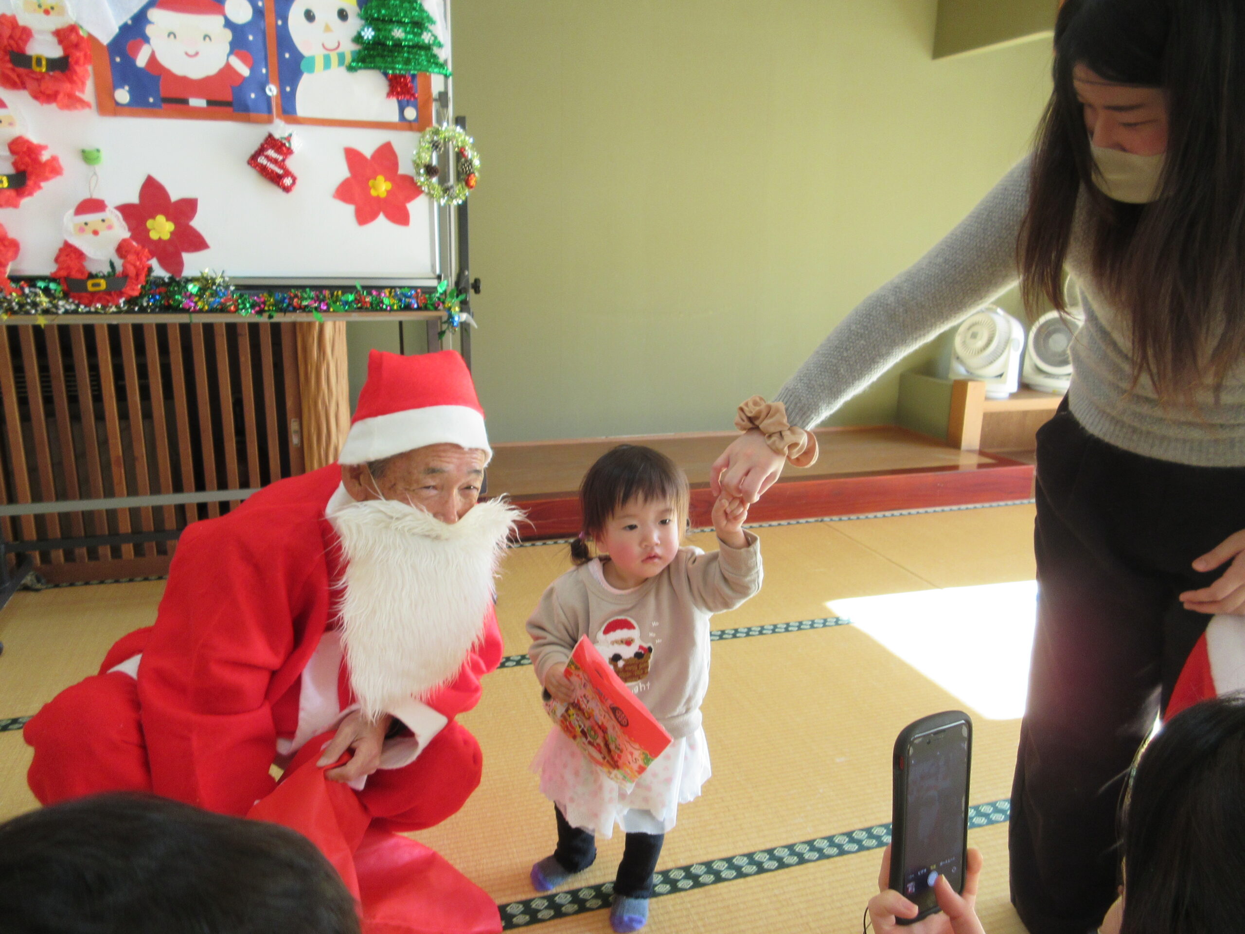 最後はお土産をもらって機嫌も治り「楽しいクリスマス会」となりました。🎅