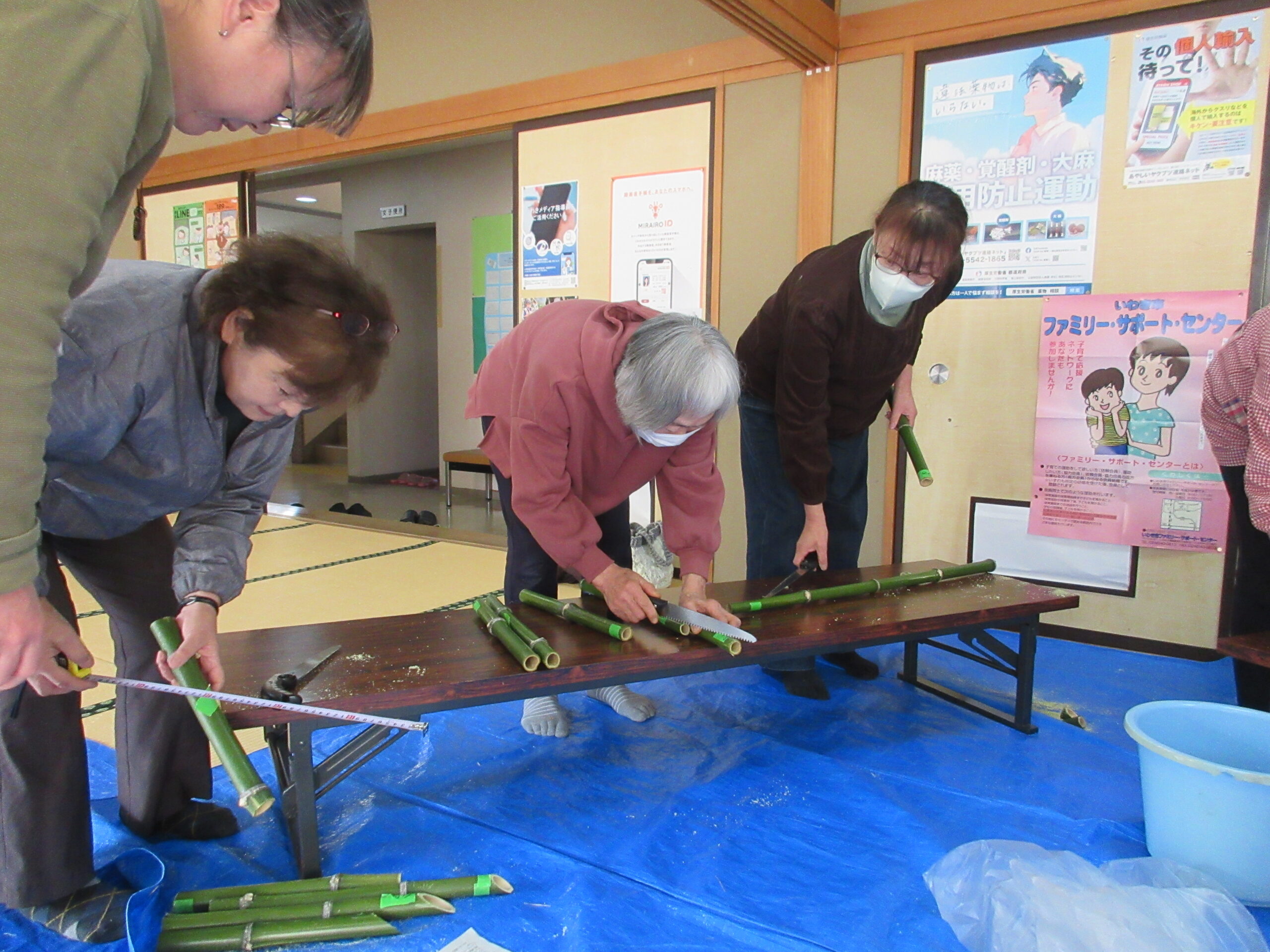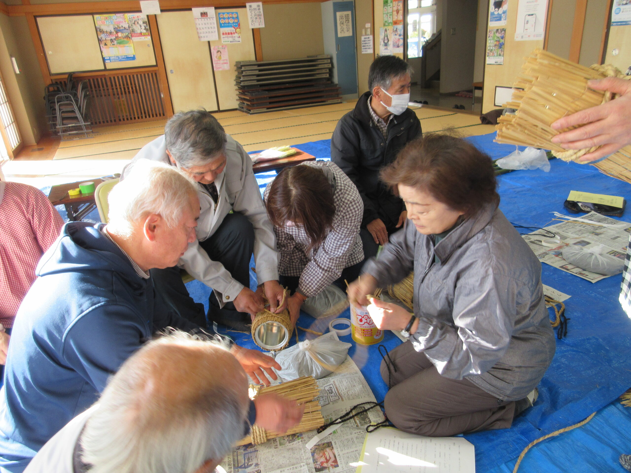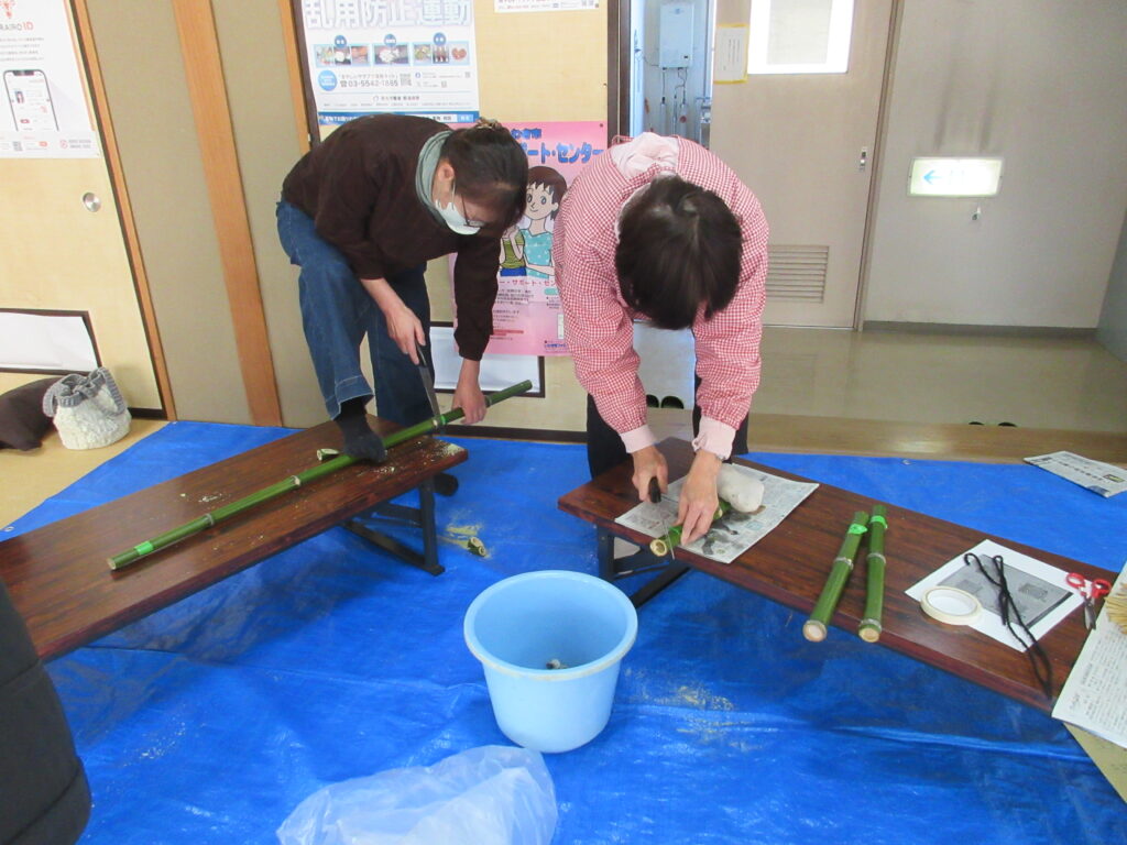 また、17日には🎍「門松づくり講座②」🎍を開催し、ミルク缶を利用しての菰巻から縄での男結び、竹の殺ぎ切り等に四苦八苦しながらも完成した