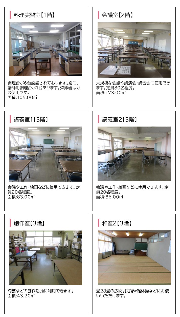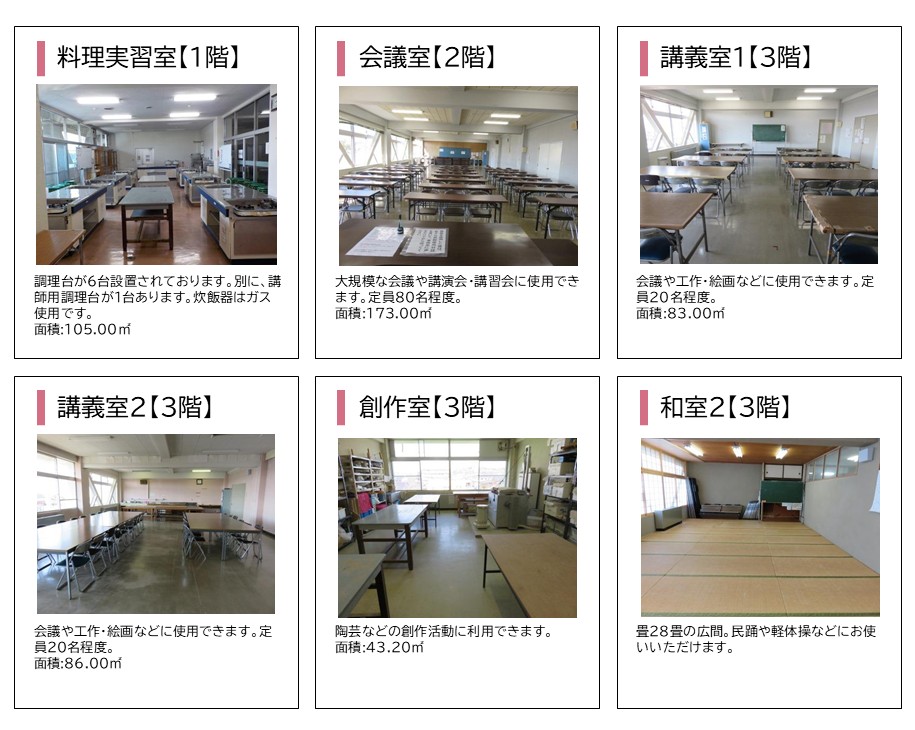 | 料理実習室 | 1,100 | 390 | 1,210 | 390 | 1,430 | 1,820 | 3,850 | 4,240 |